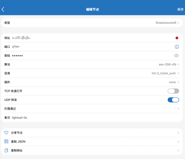 - 端口 / 密码 / 加密方式:与 Step 3 中设置保持一致