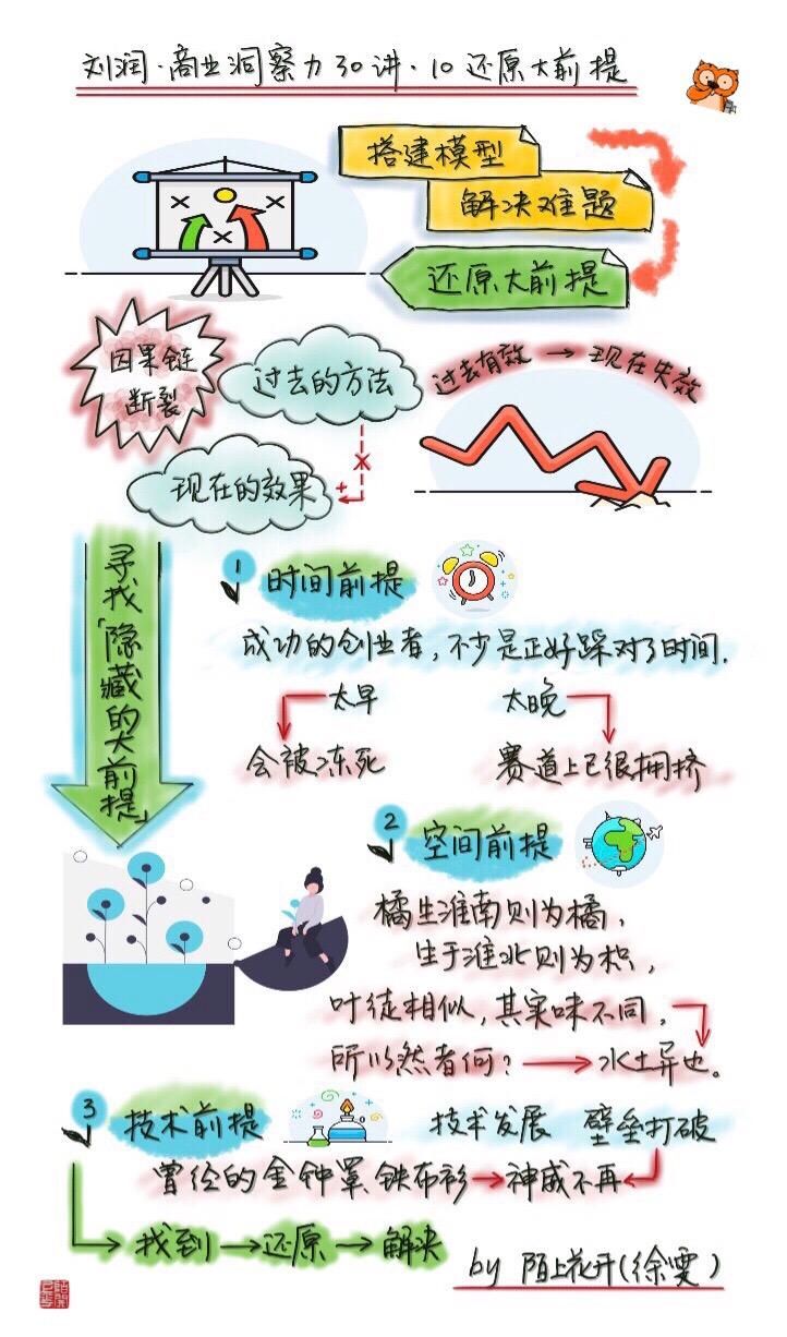 所以,过去有效,现在失效,这时你要条件反射地想到,一定是它所依赖的某个隐藏的大前提消失了。那怎么办?还原大前提。
