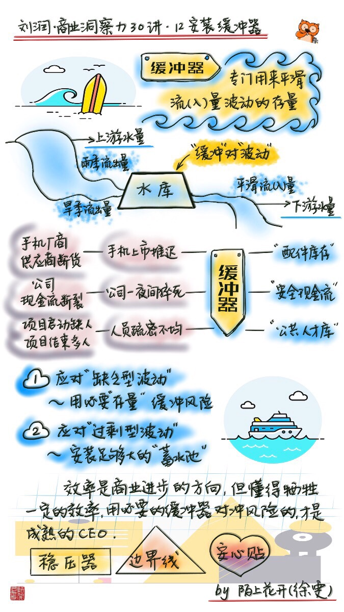 缓冲器,是专门用来平滑流入量波动的存量。水库是河流的缓冲器,存款是消费的缓冲器,库存是销售的缓冲器,现金流是经营的缓冲器,人才库是项目的缓冲器。