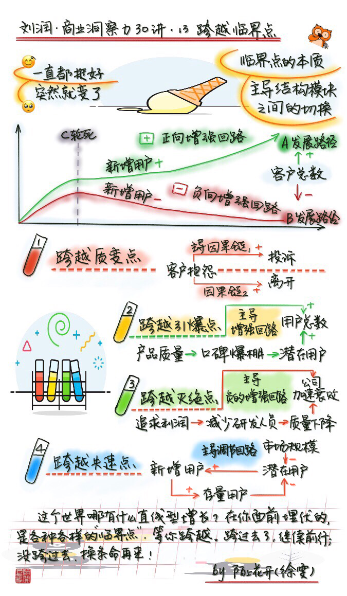 临界点的“本质”是什么?临界点的本质,是主导结构模块之间的切换。商业世界,哪有什么“直线型成长”,你需要管理前方因为“存量”触达某个阈值,而必然遭遇的四种“临界点”: