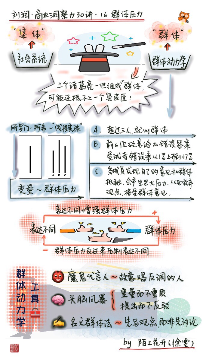 那什么是群体压力?当成员发现自己的意见和群体抵触时,会产生巨大的压力,从而主动放弃观点,接受群体意见,这就是群体压力。