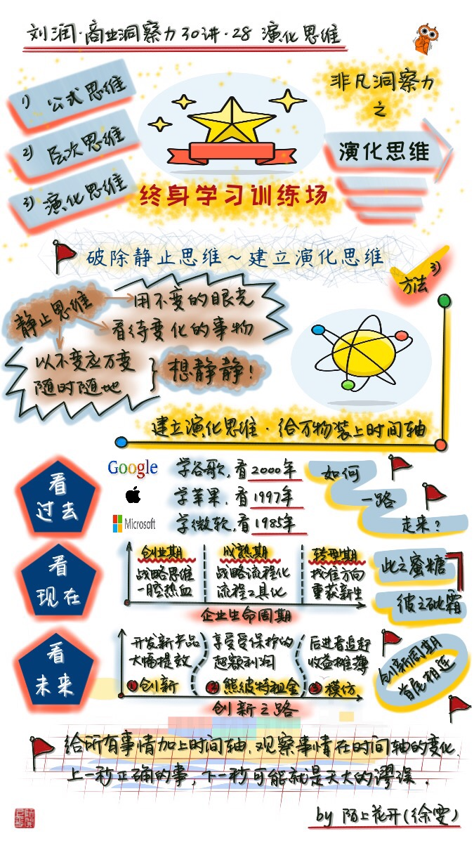 那怎样才能终身练习自己的演化思维呢?给万物装上时间轴,看过去,看现在,看未来。